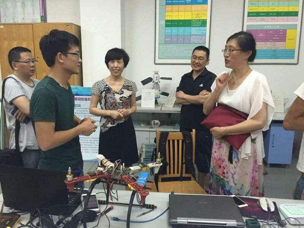 在听取学生各自实验项目的特色和建设进展后,顾京副校长绕有兴致的给学生们介绍了学院在学生创新工作方面的一些激励政策和愿景,赞赏学生们工作的热情和创新的意识,鼓励学生们进一步展开专利工作的尝试。同时要求基础部继续加强对创新实验室的建设和投入。